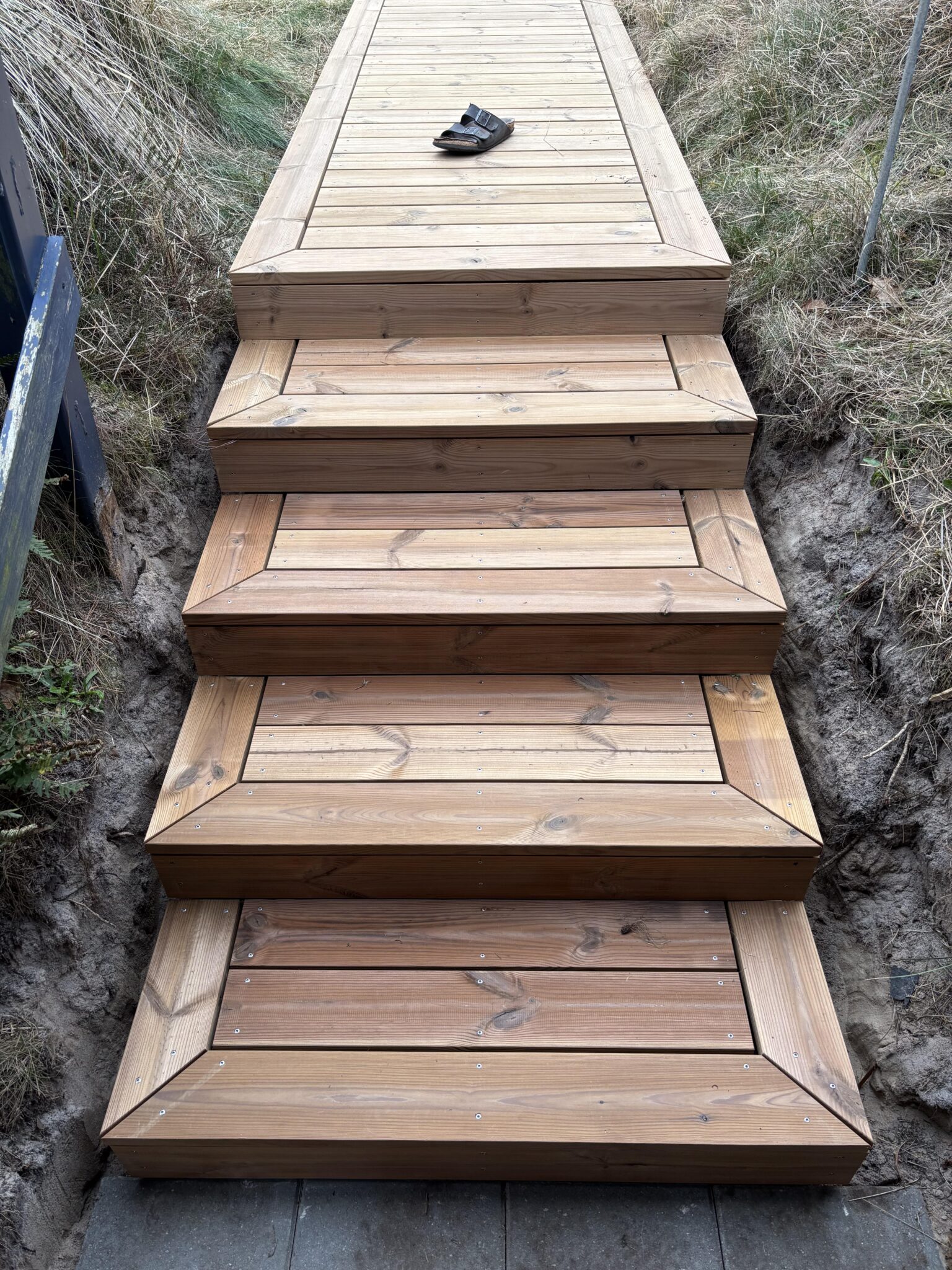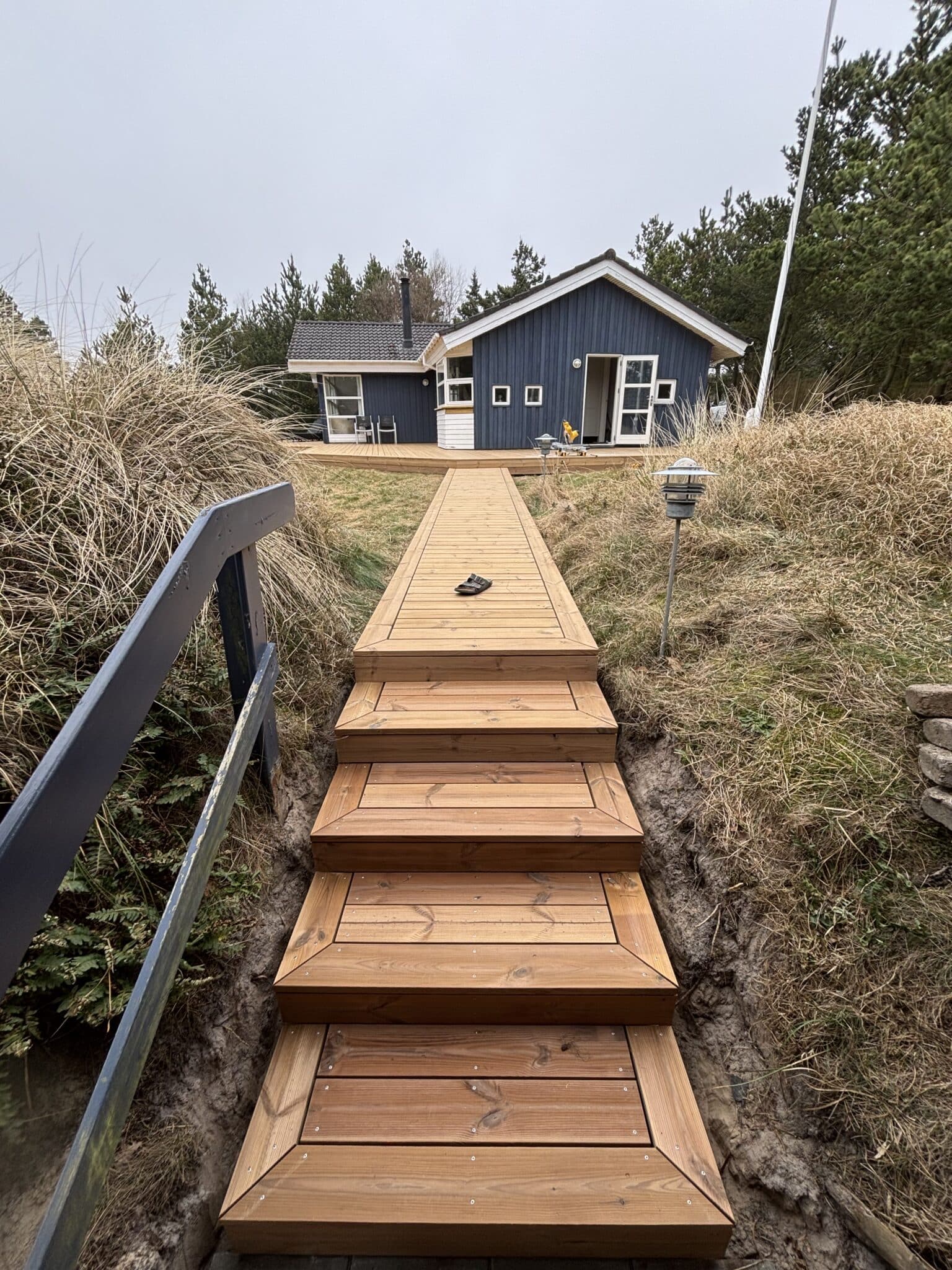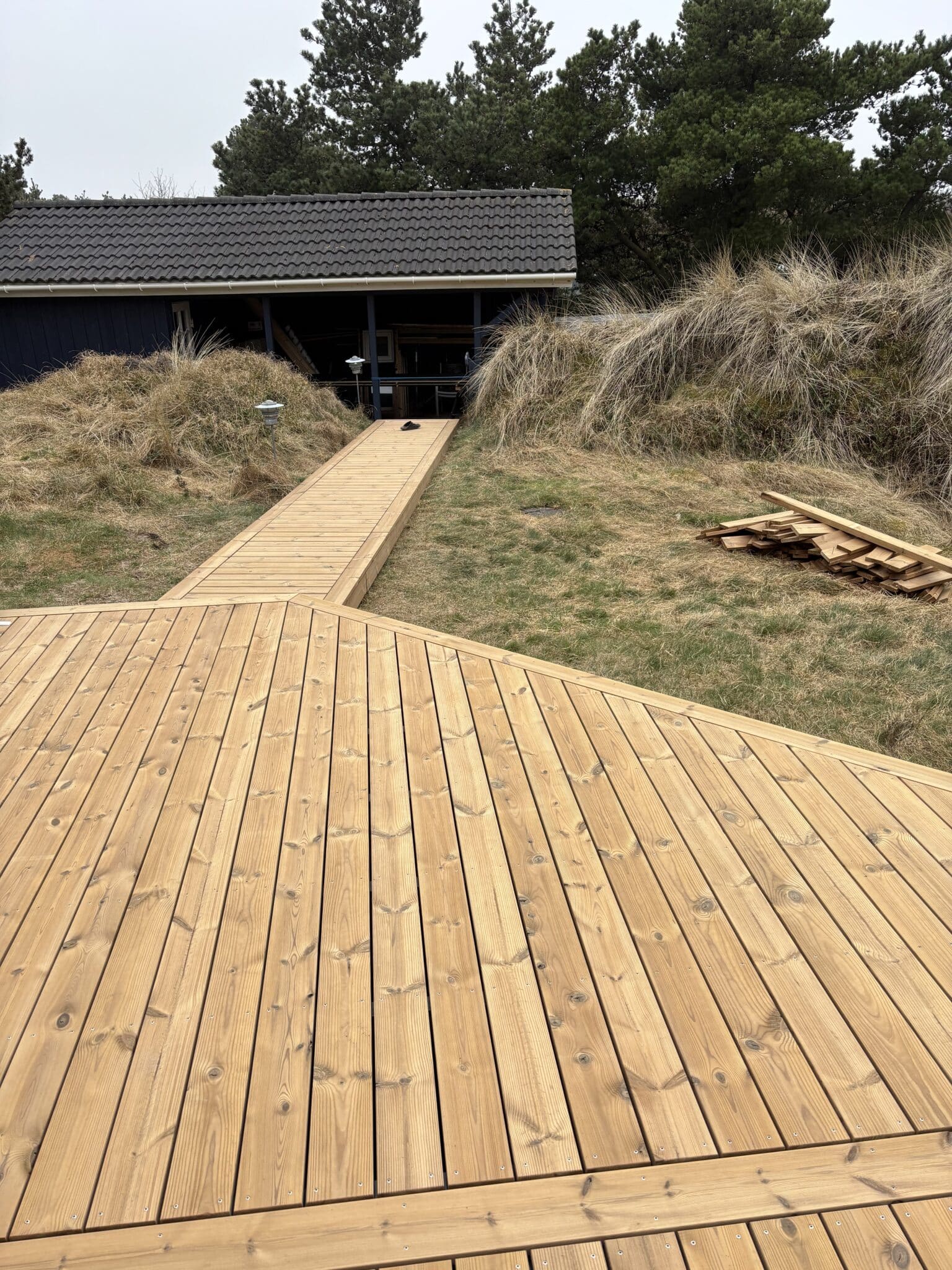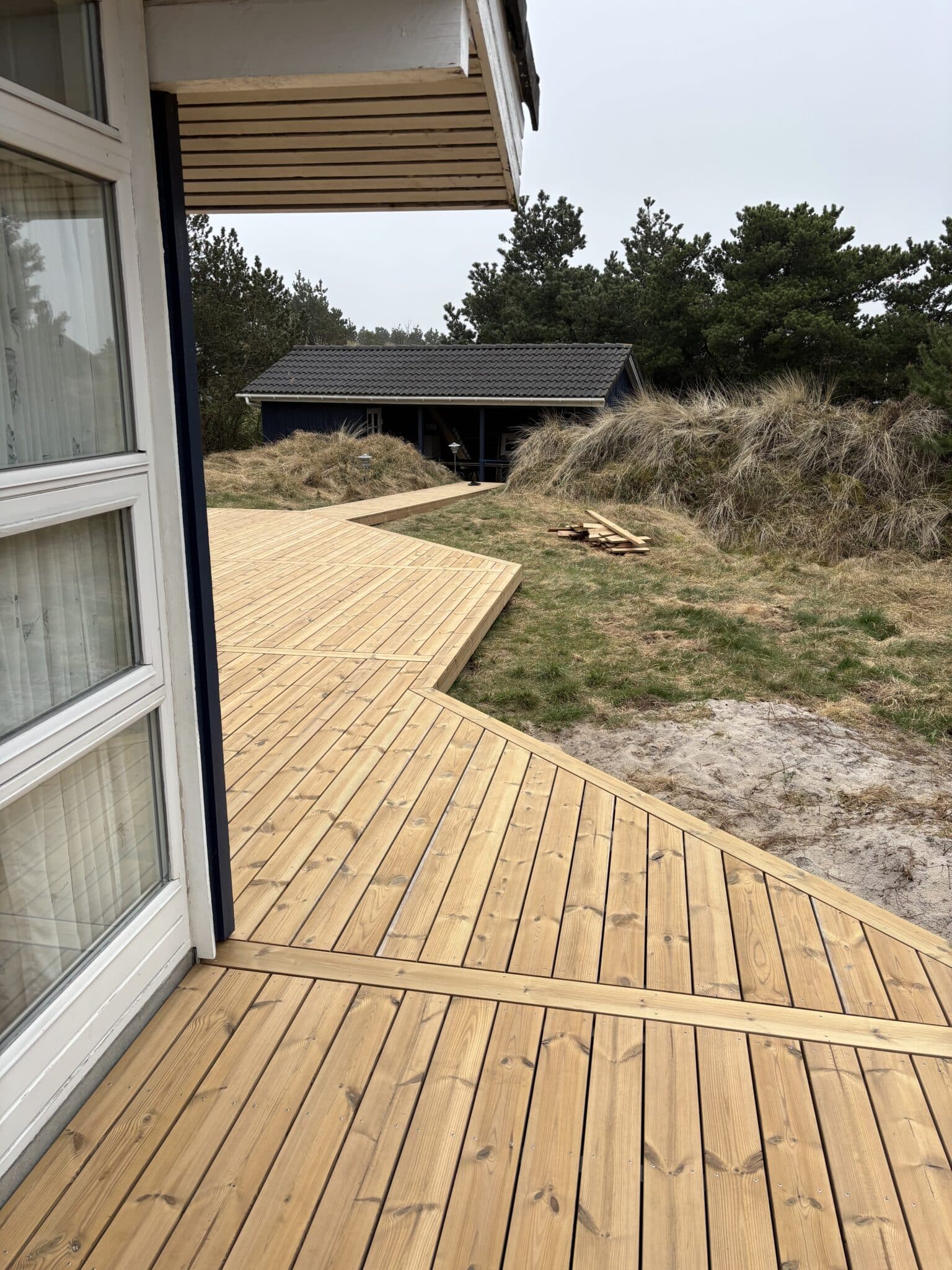 Med base i Henne kører vi ud og lægger træterrasser for kunder i et stort område, herunder byer som Ølgod, Varde og Skjern. Uanset om det er ved dit hjem eller et sommerhus, kan vi hjælpe med at bygge en træterrasse, der passer godt til ejendommen og omgivelserne.